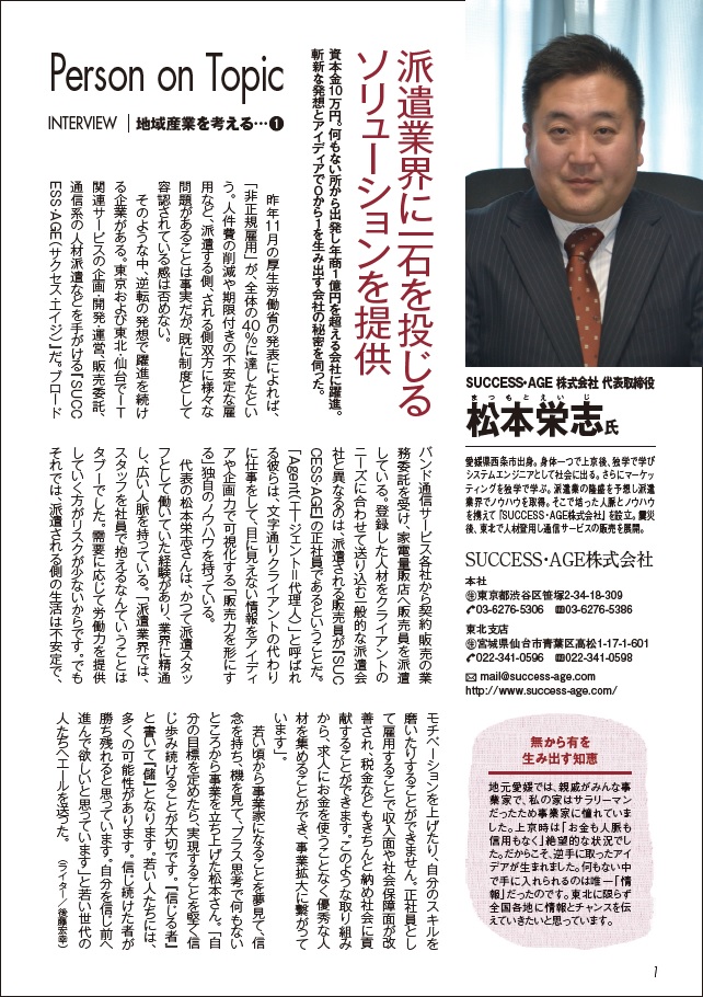 SUCCESS・AGE株式会社 代表 松本栄志が THE HUMAN STORY に掲載されました。