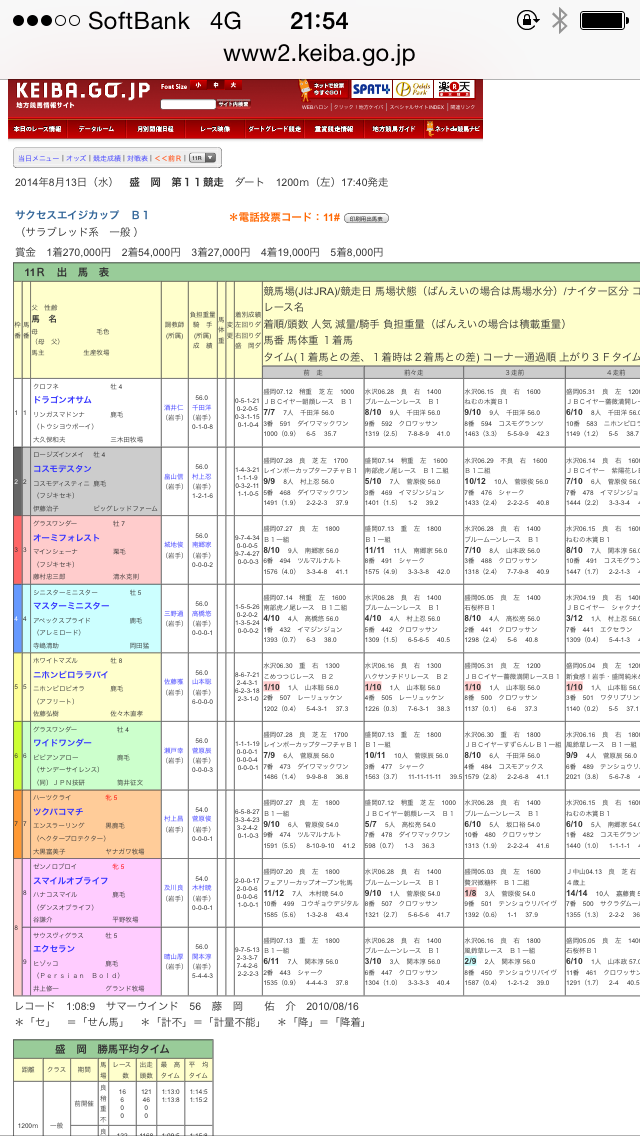 表示項目:生年月日/生涯成績/父/母